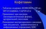 общее ослабление, отекание ног и рук; Кофетамин. Этот препарат содержит эрготамин и кофеин. Используется для устранения головной боли сосудистого генеза. Выпускается отечественной компанией «Татхимфармпрепараты».