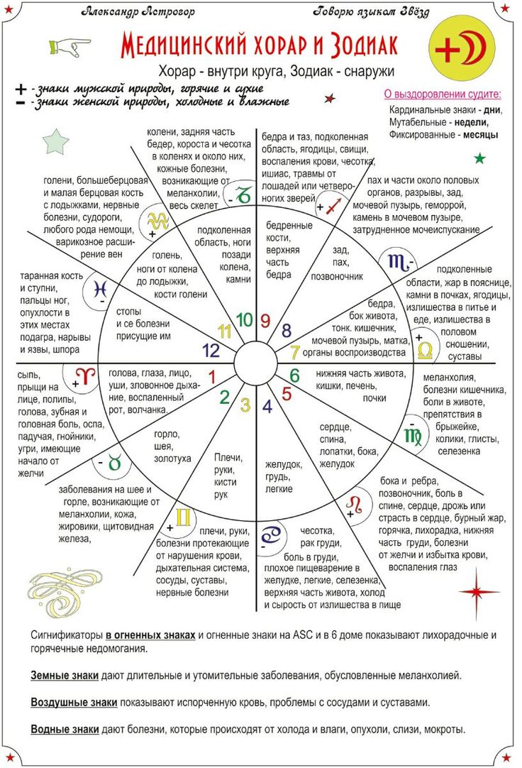 На здоровье человека воздействуют и знаки зодиака, в которых бывает Луна. Ниже приведена схема возможных недомоганий в разных знаках.